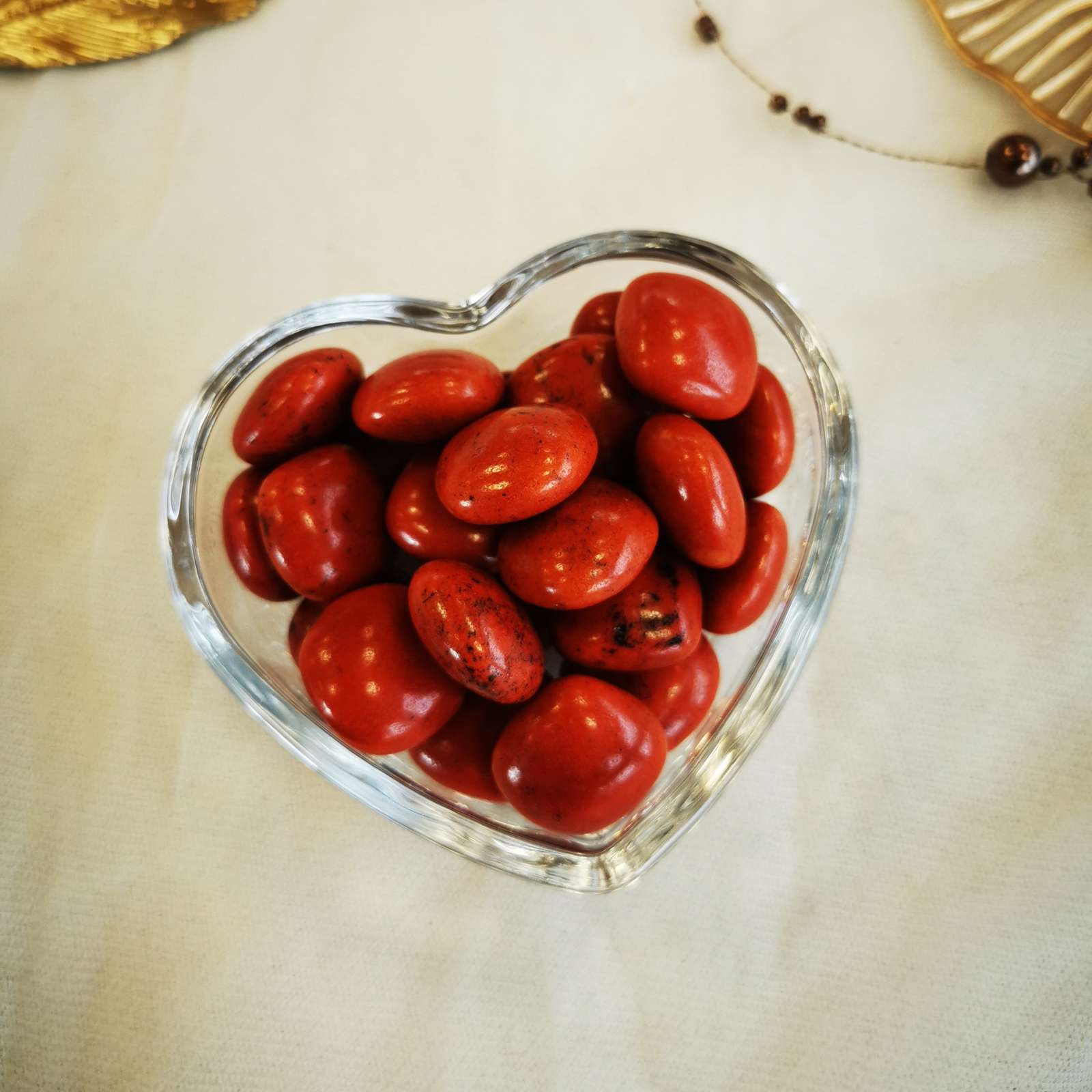 purée de fruits enrobée de chocolat sous une fine couche de sucre